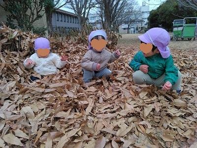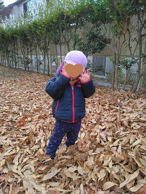 お散歩で落ち葉の中で遊んだり、お部屋で箱?に入って遊んでいいます。