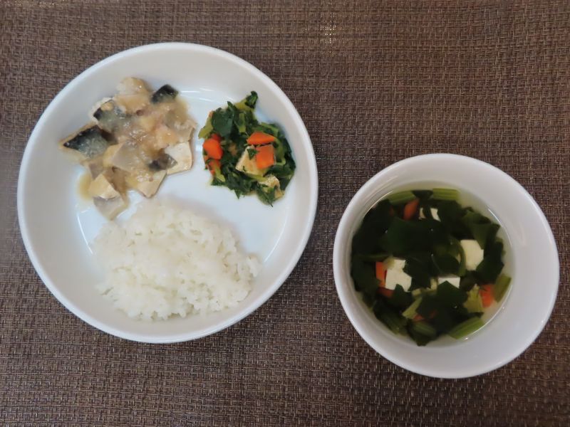 すまし汁(豆腐・ほうれん草・人参)