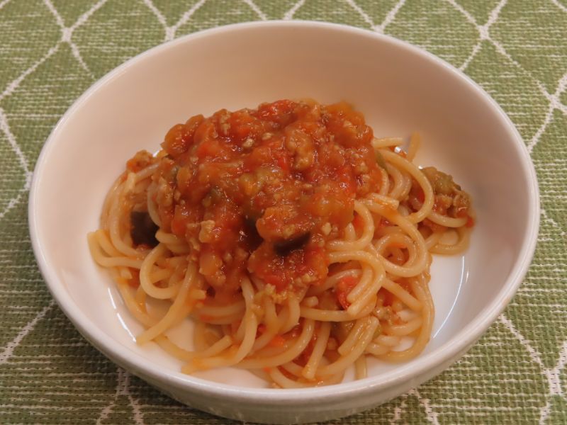 なすのミートソーススパゲティー