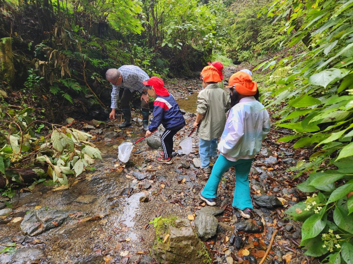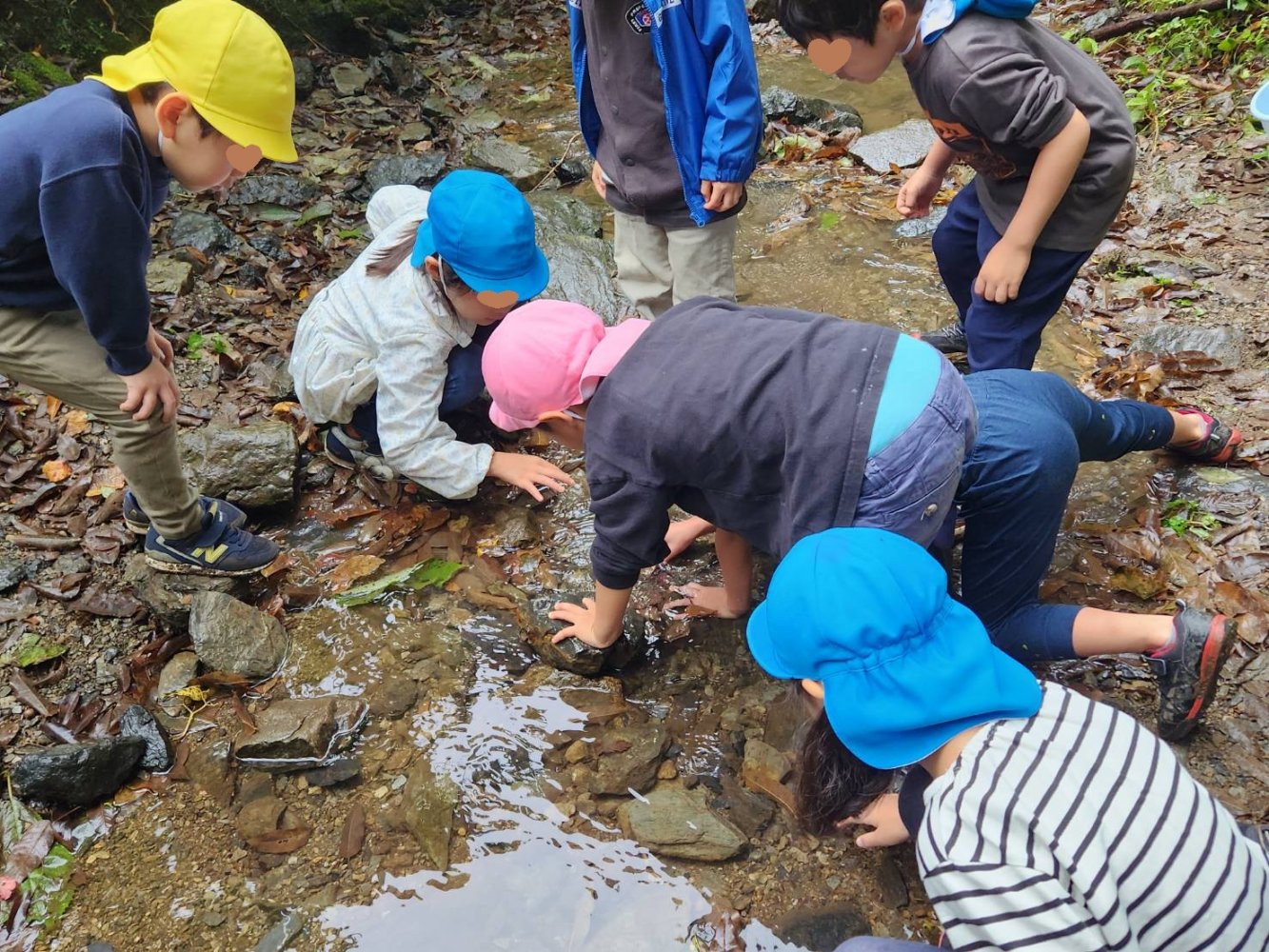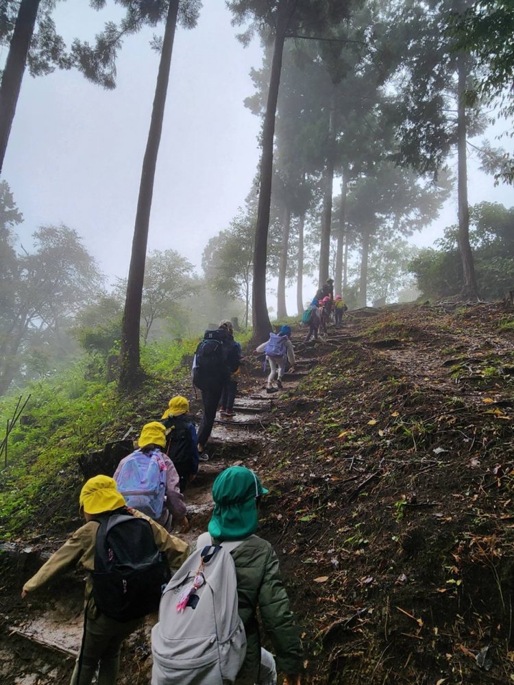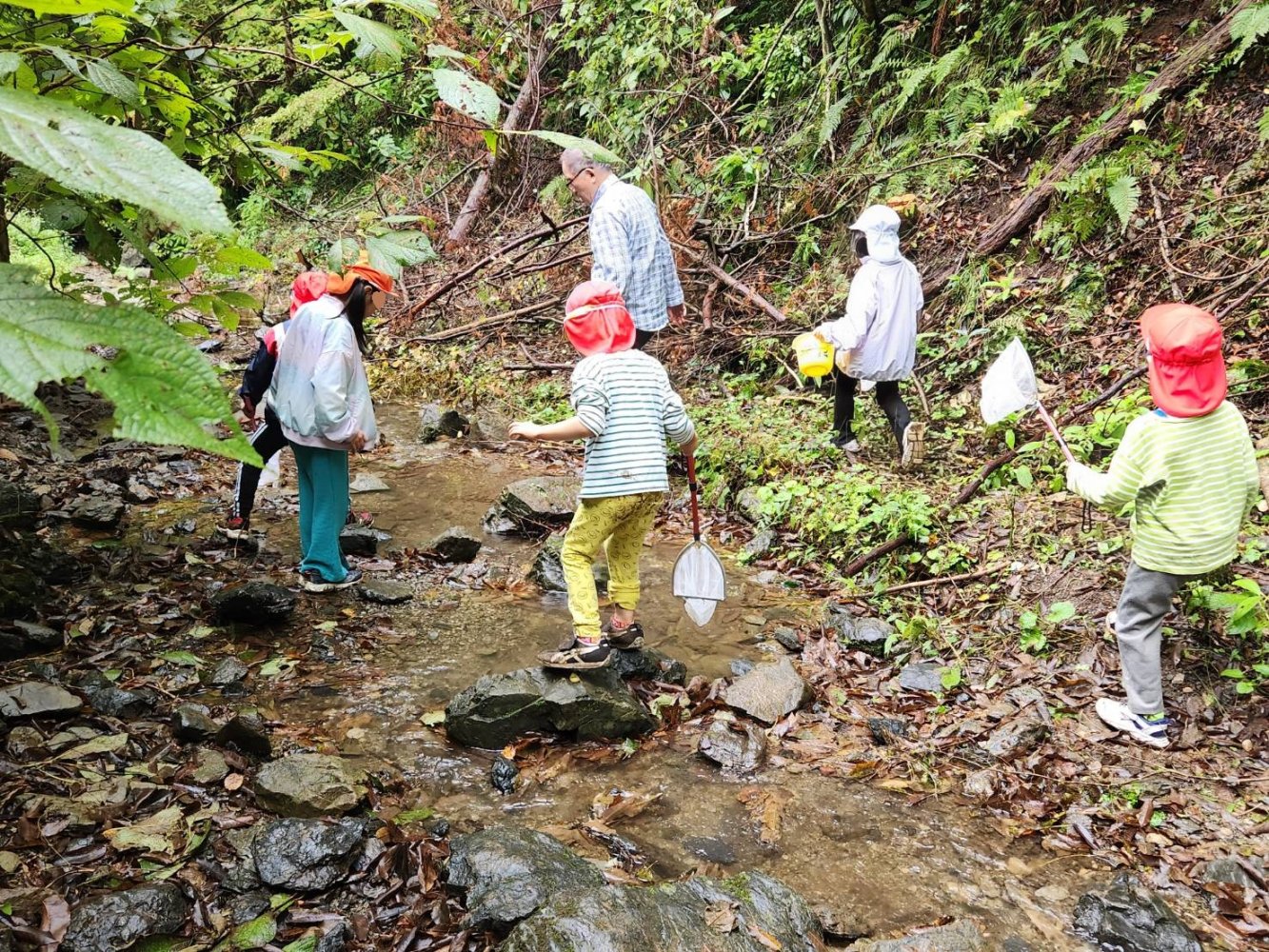 にじさん(年長)達は元気に29名全員で合宿に行きました。草戸山探検をし、小川で生き物探をして楽しみました。