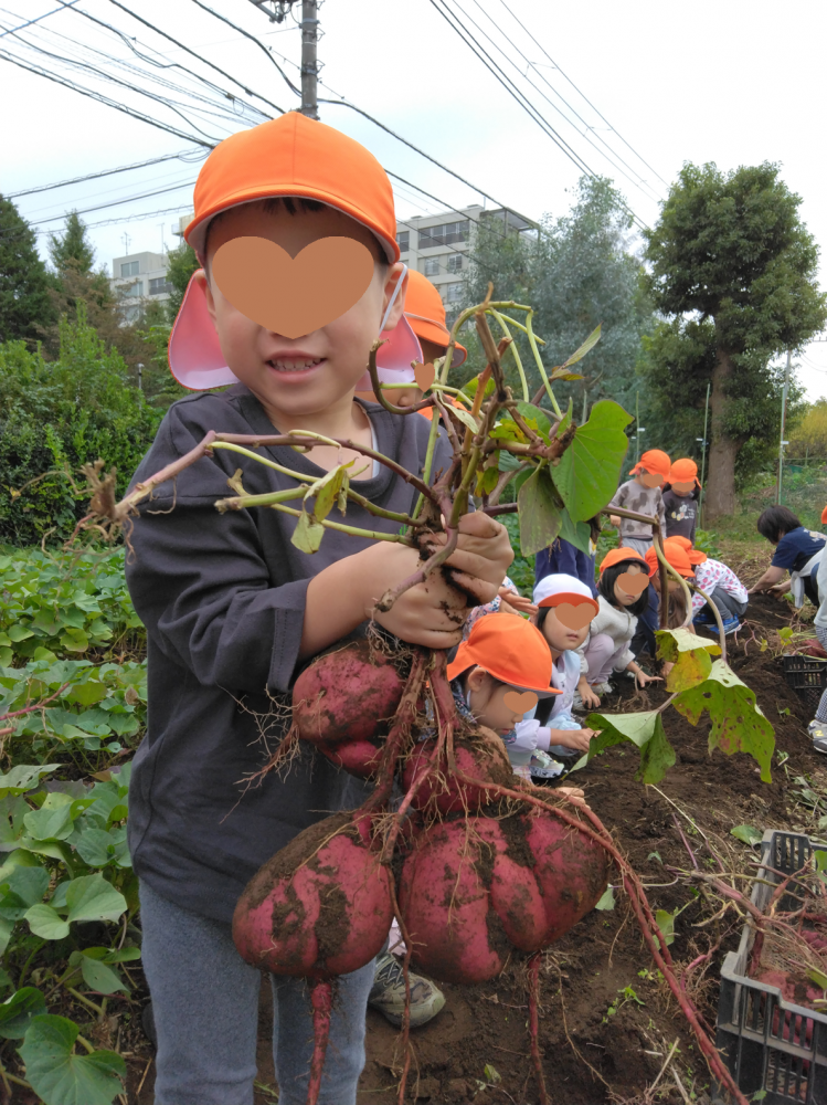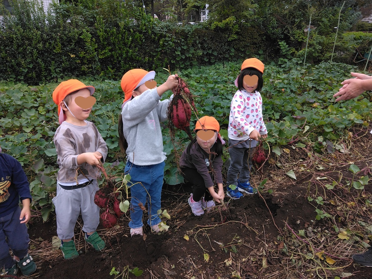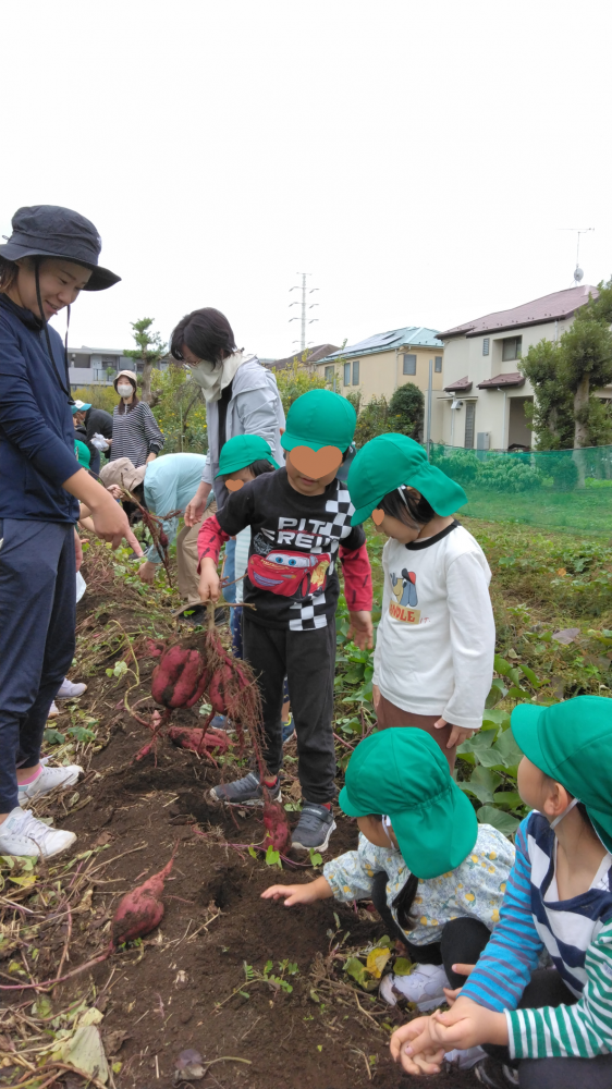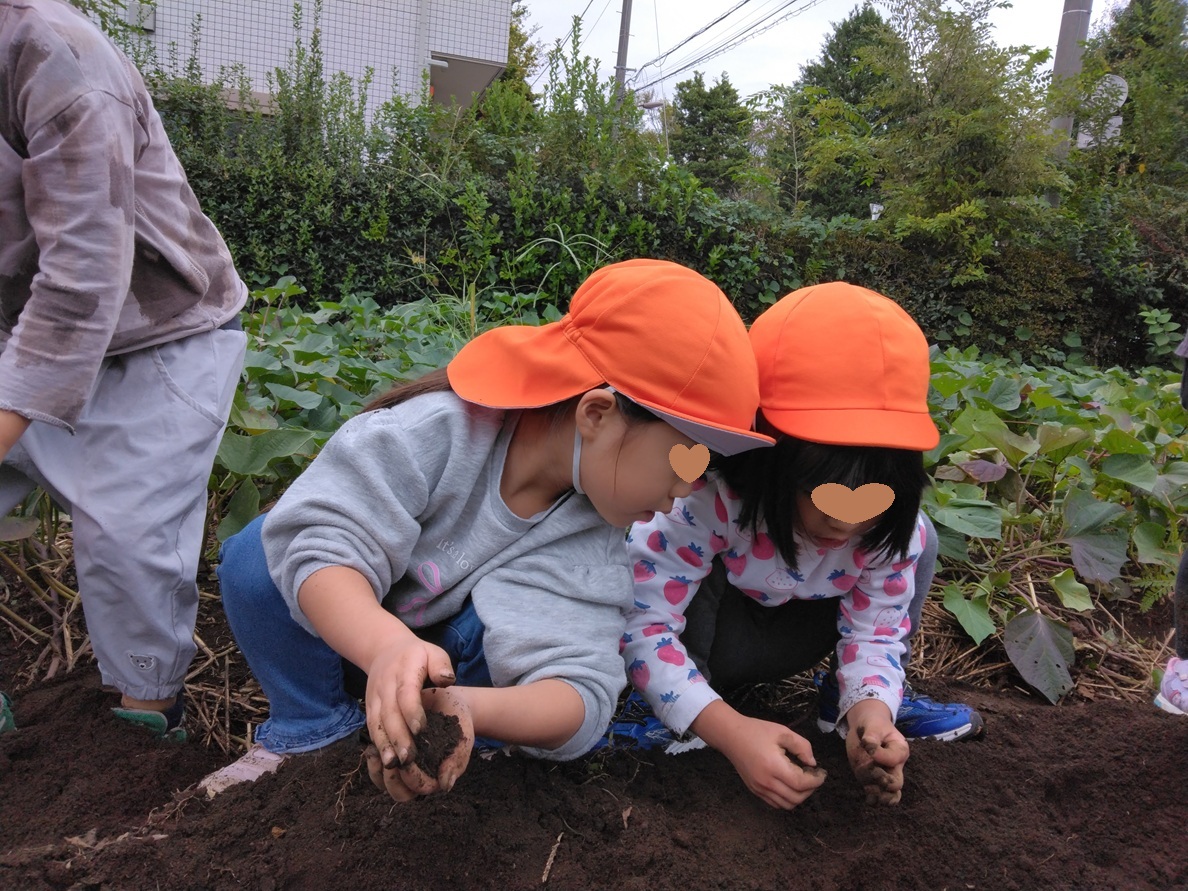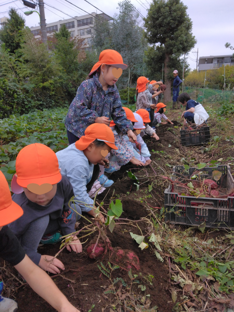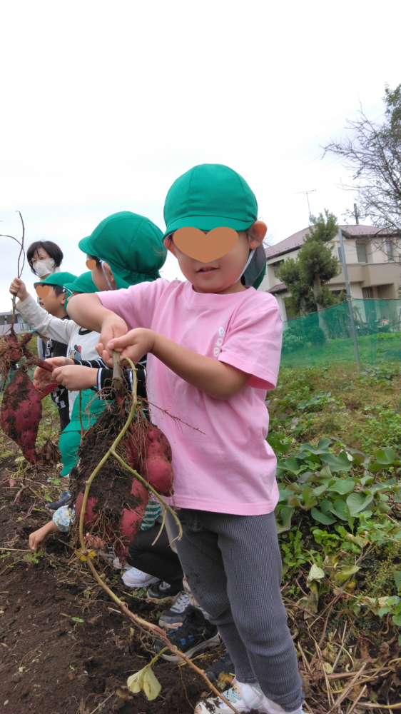 幼児のかりんさん、あんずさん達は昨日サツマイモ堀りに行きました。
