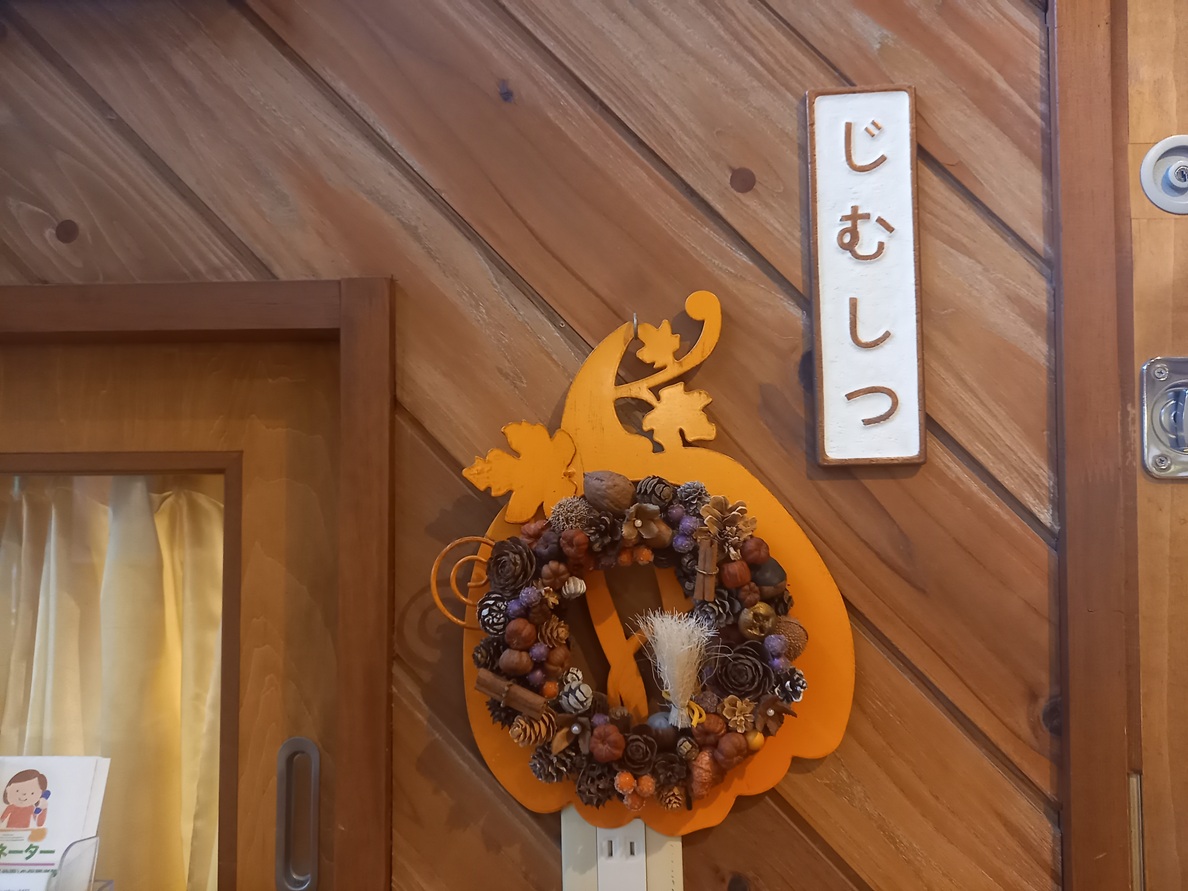 非常勤の先生がハロウィーンのリースを作って来てくださいました。