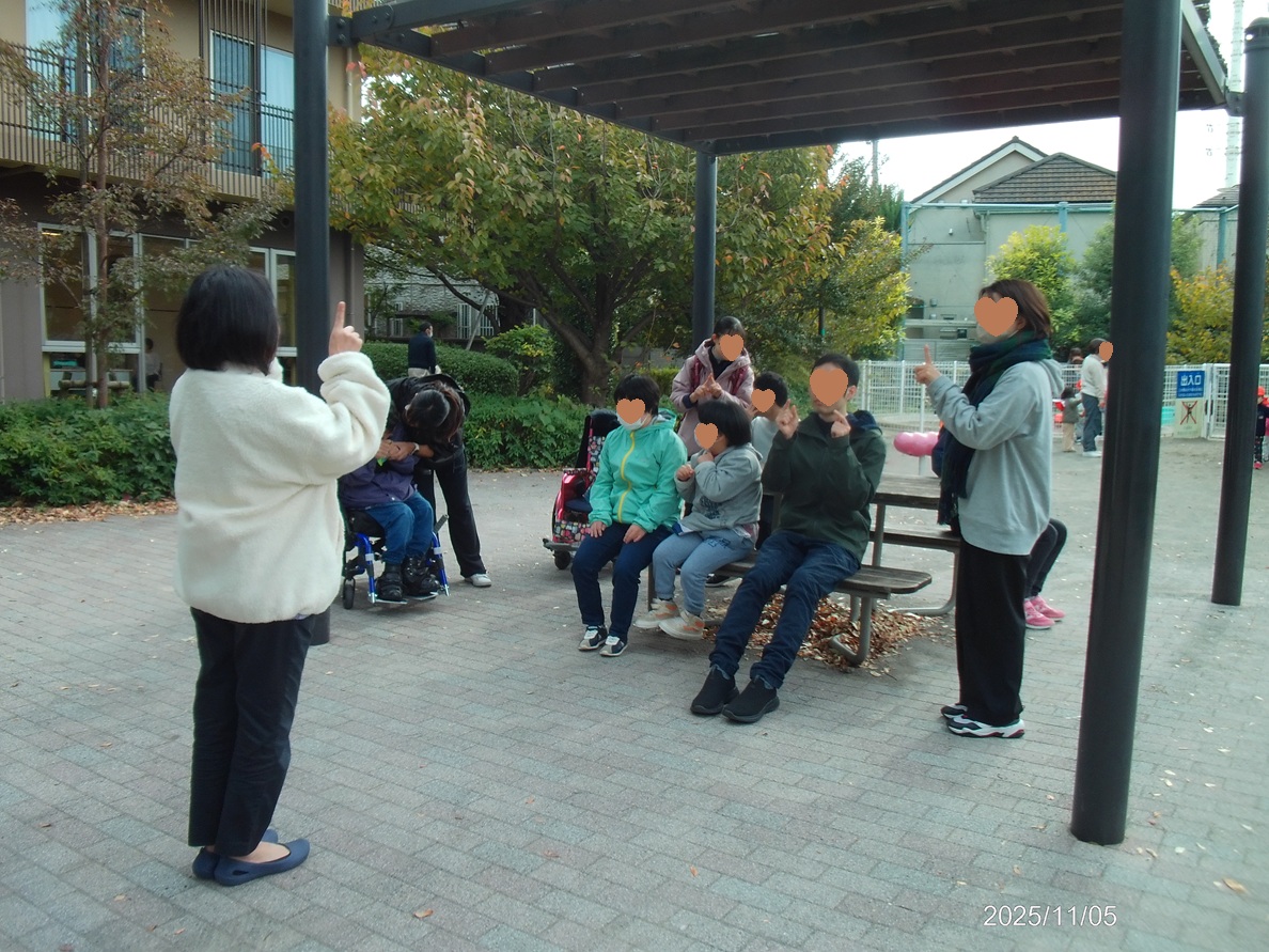 昨日は良い天気でした。広場の「一緒に遊ぼう会」でミニ運動会や手遊びを行いました!