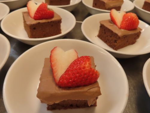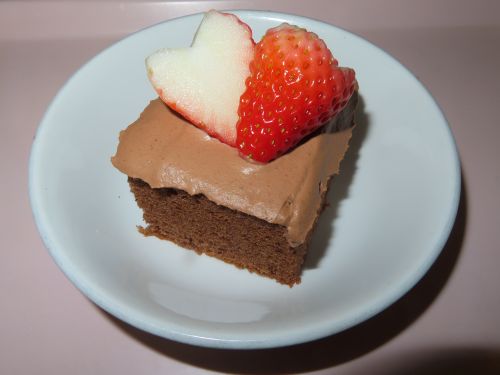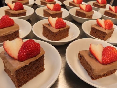 ココアスポンジにいちごをハートにして
