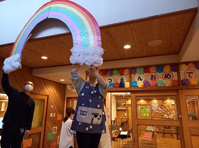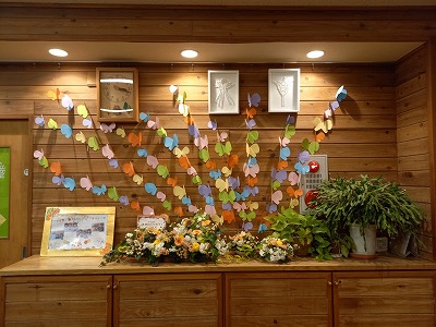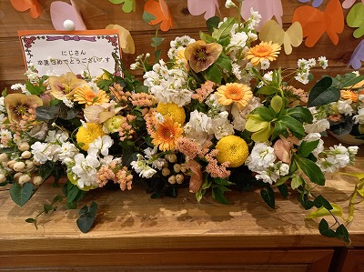 フラワーアレンジメントは、職員が作ってくれました。素敵です(^^♪