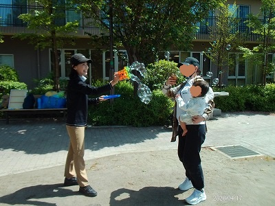 シャボン玉や、パネルシアター「チューリップ」をして遊びました。